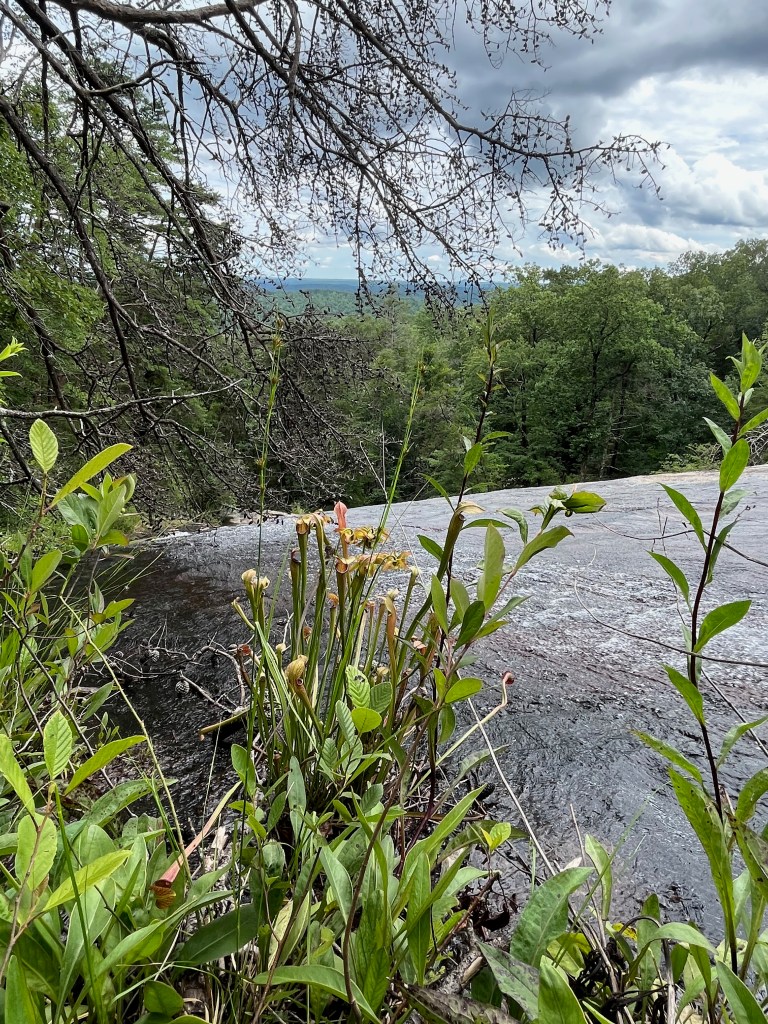 Interwoven into the Eastatoe Valley of the South Carolina is one of my favorite land marks and plant sights. After parking your car near the wall of Sourwood trees, walking past the remains of a former burnt out house, there awaits an epic granite outcrop. There are many interesting, unique specimens amongst the island of vegetations around the slabs of rock. The most unique is Grass of Parnassus (Parnassia asarifolia) which I remember a New York guy telling me circa 2012 it was “the most expensive seed to buy.” Watch out for methheads too or whoever does the spray painting up there. Look further and there is an even better plant..a Pitcher Plant…in the mountains.. wild. The epic, the famous, Mountain Sweet Pitcher Plant (Sarracenia jonesii). Not the most upright and beautiful within the Sarracenia genus. But, maybe, the most elusive. It only exists and stays alive due to a trickle of water from the higher elevations of nearby mountains. And, they exist directly beside dry as hell plants on the outcrop which creates a unique juxtaposition.